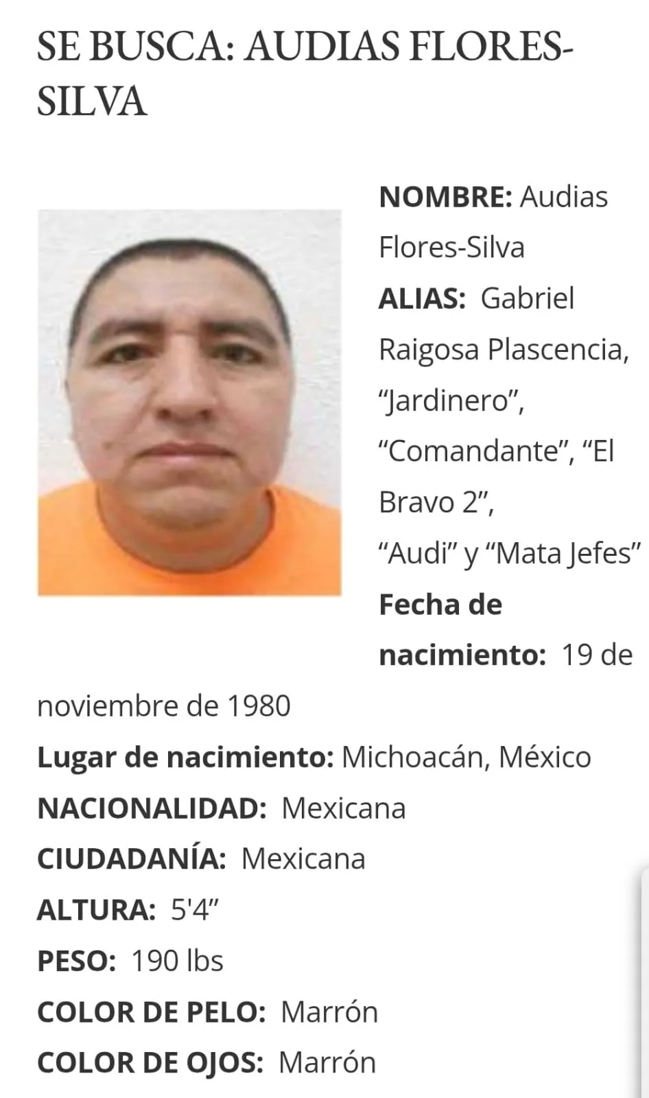 Se trata de Julio Alberto Castillo Rodríguez, yerno del capo; Gonzalo Mendoza, alias “El Sapo”; Audias Flores, alias “El Jardinero” y Ricardo Ruiz Velasco