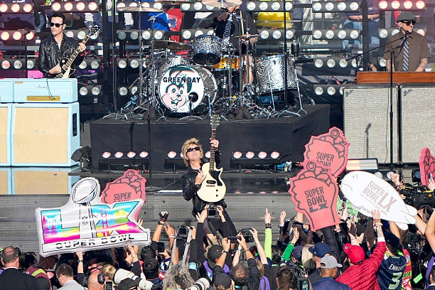 En un emocionante show previo al partido más importante de la NFL, la banda californiana Green Day tocó temas clásicos de su discografía mientras honraba a jugadores valiosos como Joe Montana, Tom Brady o Jalen Hurts, entre otros.